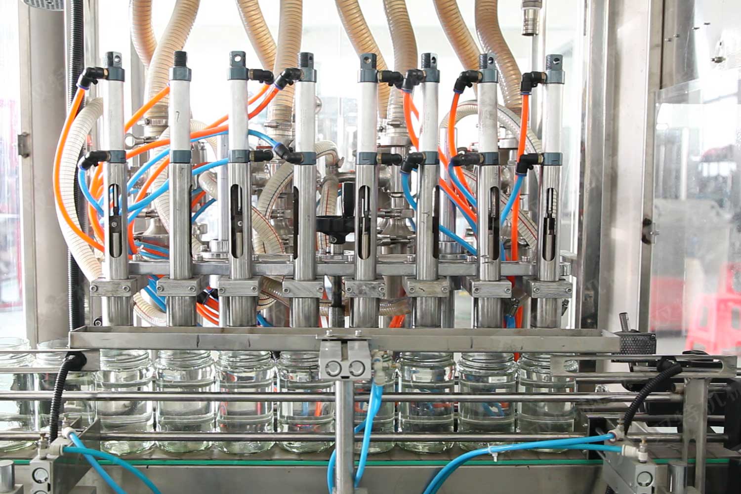 濃醬灌裝機主要是針對食品行業的醬類分裝,適用于調味品中帶顆粒并且濃度較大的辣椒醬、豆瓣醬、番茄醬、沙拉醬、花生醬、芝麻醬、果醬、牛油火鍋底料、紅油火鍋底料等物質的粘稠醬類的灌裝。濃醬灌裝設備配帶攪拌功能,并且使灌裝更加精確。